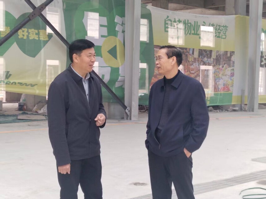 【乡村振兴信息网】(人民摄影网签约摄影师卢班视点摄影报道)“刘会长,这是我们占地150亩的中亿农博城的全部规划。”3月14日上午,洛阳市农副产品行业协会会长,洛阳通河农副产品有限公司董事长刘长河一行四人到偃师区洛阳中亿农博城进行调研,该公司董事长黄显伟等陪同调研。 他们先是对农贸市场行业的发展前景进行了探讨,黄显伟又对中亿农博城的全景规划向刘长河一行做了详细的介绍,最后到施工工地进行了察看。